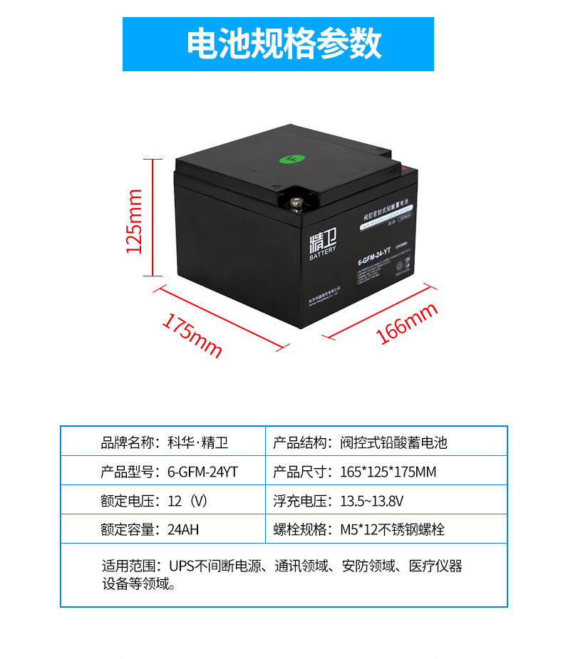 科华精卫 6-GFM-24-YT 12V24Ah蓄电池正品保证。全国联保三年,全国范围可免费上门安装调试。