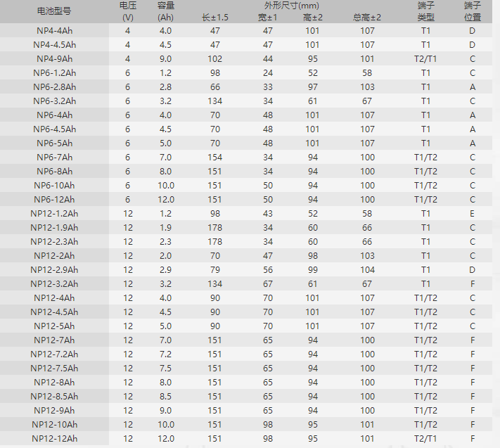 耐普1.2Ah-28Ah小密系列蓄电池,电压范围:4v/6v/12v正品保证。全国联保三年,全国范围可免费上门安装调试。