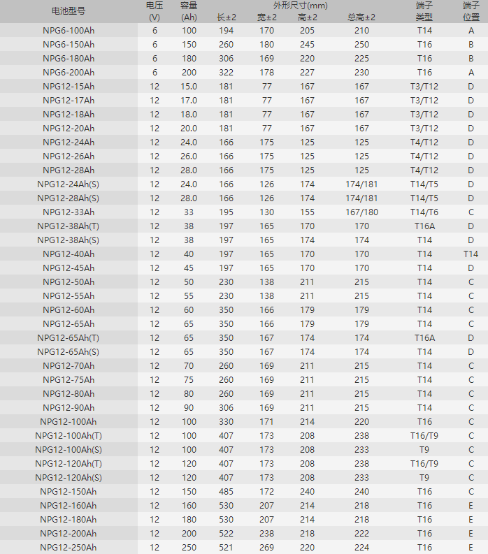 耐普15Ah-250Ah中密系列蓄电池,电压范围:6v/12v正品保证。全国联保三年,全国范围可免费上门安装调试。