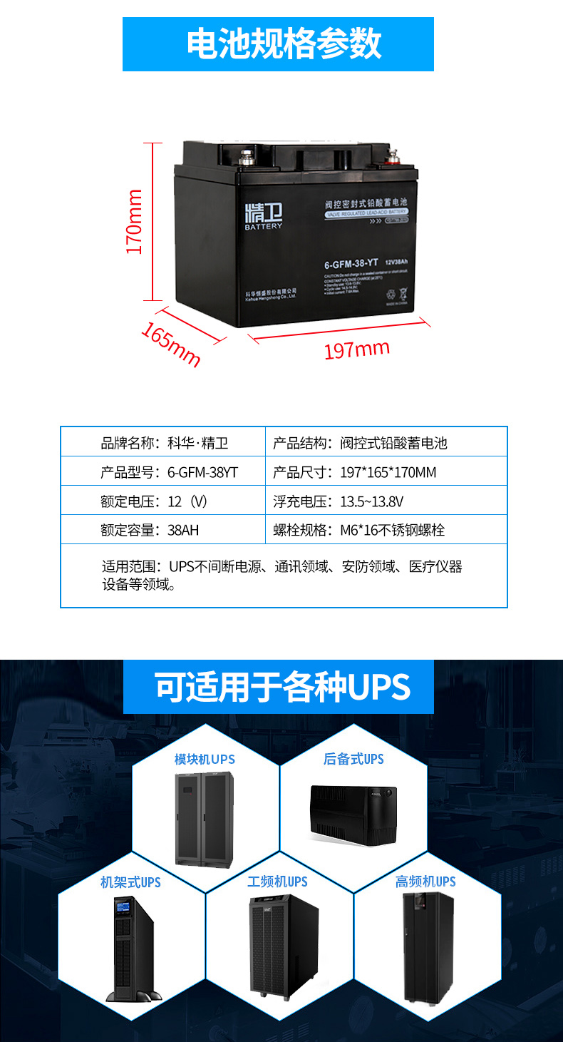 科华精卫6-GFM-38-YT 12V38Ah蓄电池正品保证。全国联保三年,全国范围可免费上门安装调试。