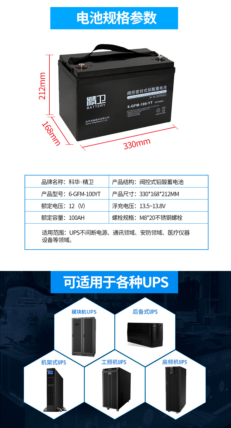 科华精卫6-GFM-100-YT 12V100Ah蓄电池正品保证。全国联保三年,全国范围可免费上门安装调试。