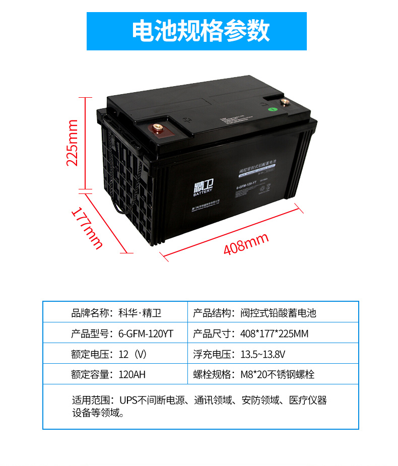 科华精卫6-GFM-120-YT 12V120Ah蓄电池正品保证。全国联保三年,全国范围可免费上门安装调试。