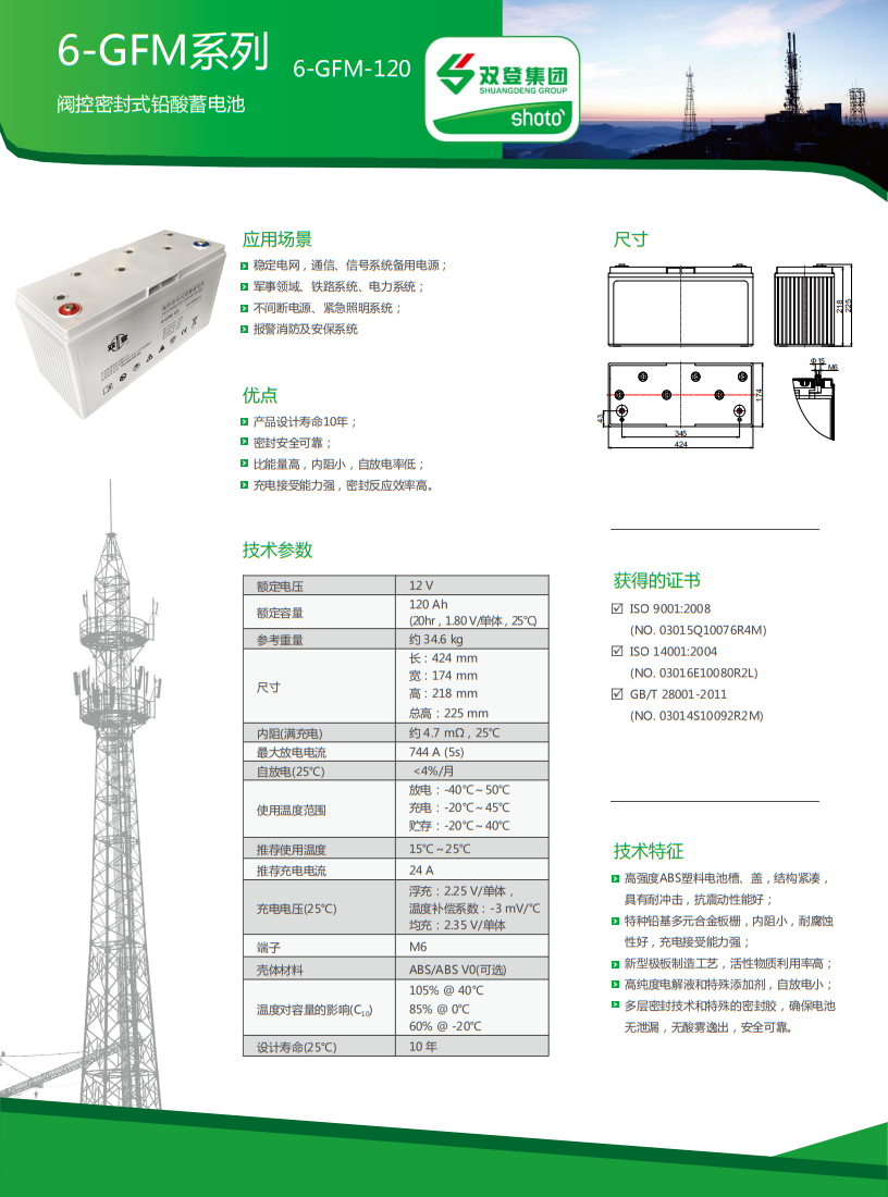 双登6-GFM-120 12V120Ah蓄电池正品保证。全国联保三年,全国范围可免费上门安装调试。