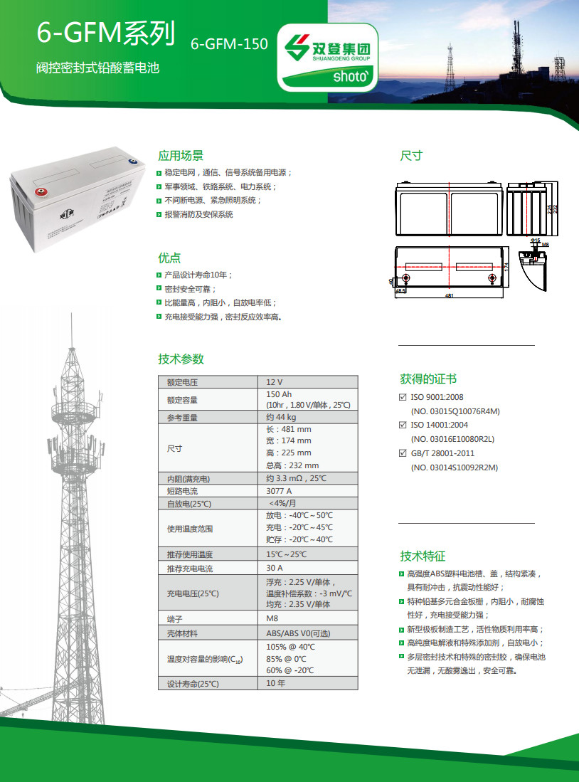 双登6-GFM-150 12V150Ah蓄电池正品保证。全国联保三年,全国范围可免费上门安装调试。