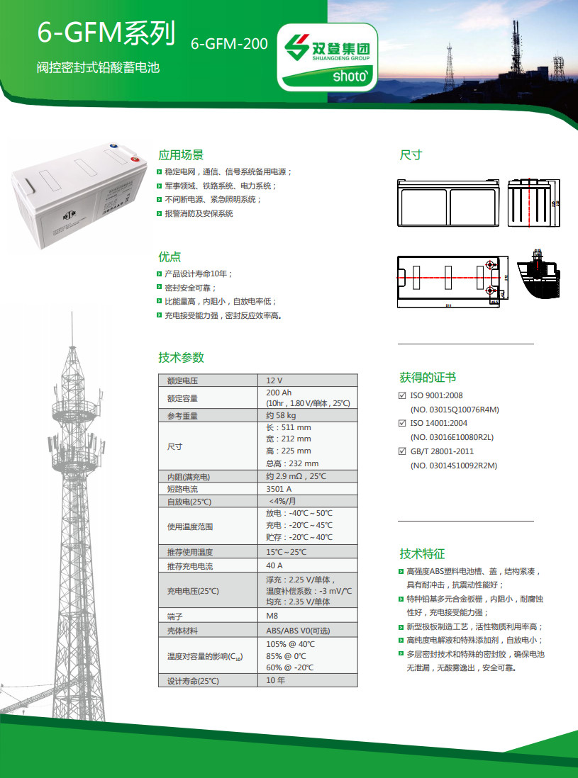双登6-GFM-200 12V200Ah蓄电池正品保证。全国联保三年,全国范围可免费上门安装调试。