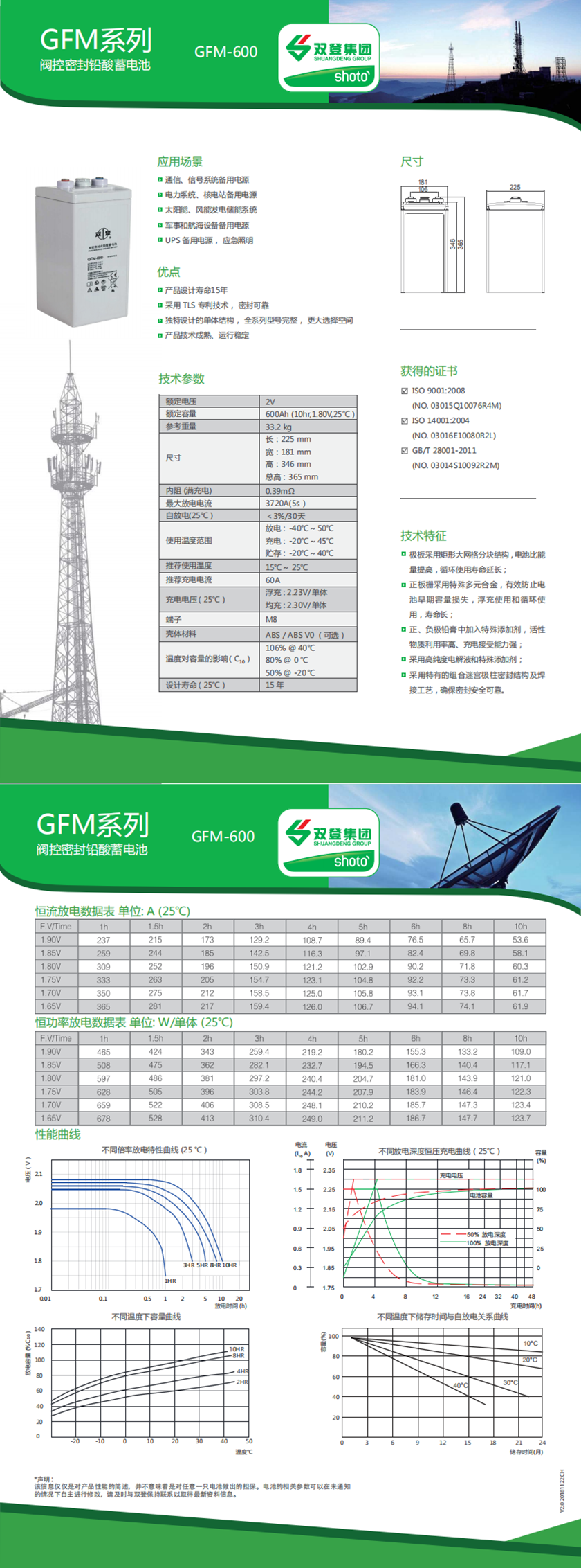 正板栅采用特殊多元合金,有效的防止了电池早期容量损失,浮充使用和循环使用,寿命长