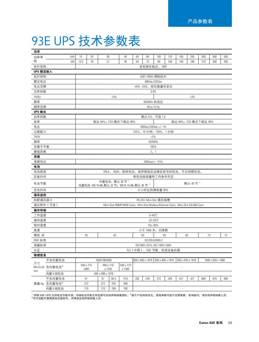 伊顿93EX系列UPS电源15-500KVA塔式,产品全国联保。价格优惠,可全国范围提供免费上门安装调试服务。