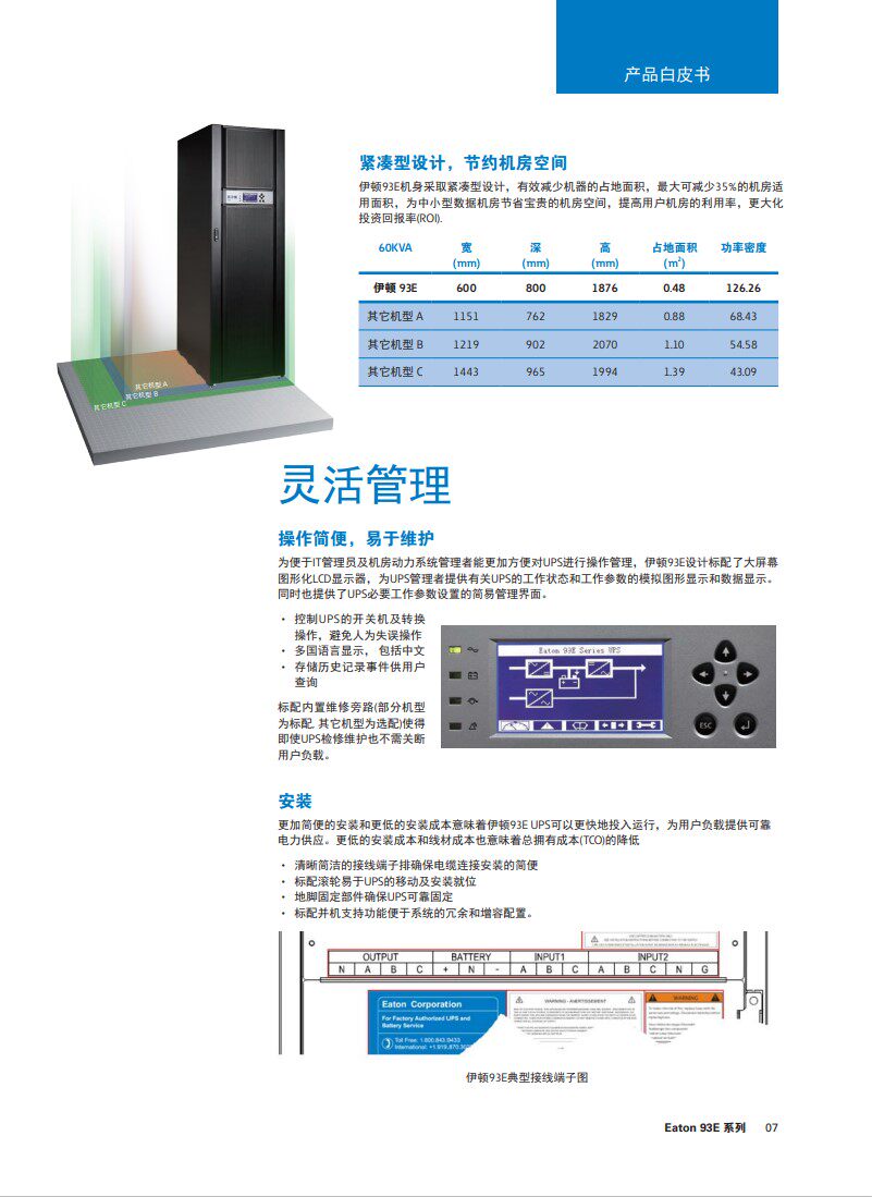 产品名称:伊顿93EX系列UPS电源15-500KVA塔式,产品全国联保。价格优惠,可全国范围提供免费上门安装调试服务。